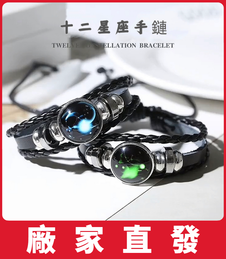 2分鐘前夜光手鍊十二星座皮繩手串學生潮人情侶飾品首飾女韓版時尚帥氣 - 【夜光手鍊十二星座 六入组】